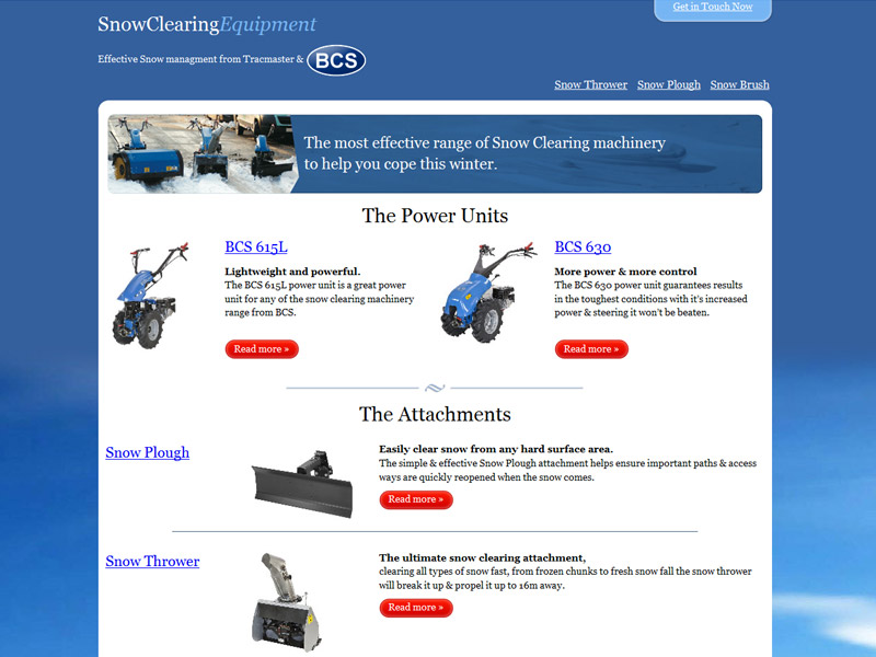 Project: Promotional site for Tracmaster's BCS Snow clearing equipment.